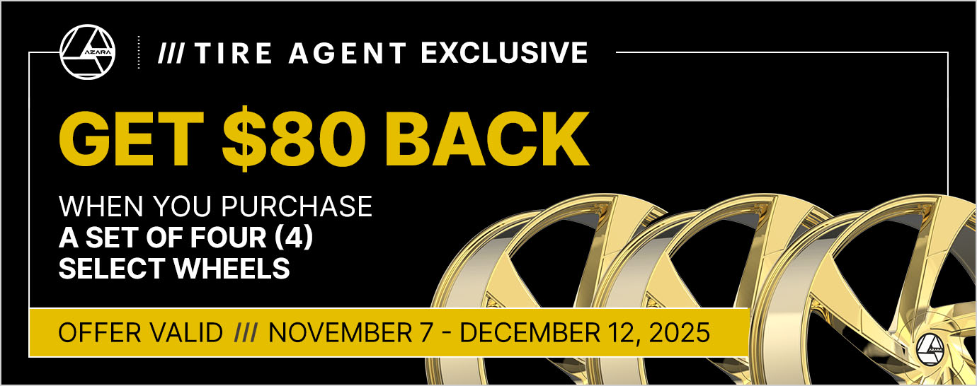 Offer valid for residents of the United States (excluding Hawaii and Alaska) only. Purchase must be completed between 11/07/2025 and 12/12/2025. Limit of one (1) redemption request $80 Reward per purchase of four (4) select Azara wheels.